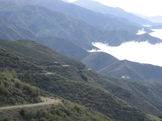 While illness has had me in a deep valley, my girlfriend has been peaking. In a three week span, Sandee did her Birthday Challenge (riding Figeuroa--37miles, 3,700' of elevation gain, swim 3700 meters, 37 boulder problems, and running 37 miles while tasting 37 wines and eating 37 Peeps) which she warmed up for with a relay race where she ran most of three continuous legs (about 25 miles) because her teammate couldn't keep up with her on a mtn bike to run his leg, then warmed down with a 4 hour run over rugged terrain, with me, and with one day's rest a 50k trail race with 5,000' of elevation gain. It was one of those weird birthday challenge combos that's hard to appreciate.